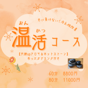 ホットストーンで深部までじんわり温めながら、代謝UPアロマの香りで自律神経をゆるめ、溜まった緊張を丁寧にリリースしていきます。